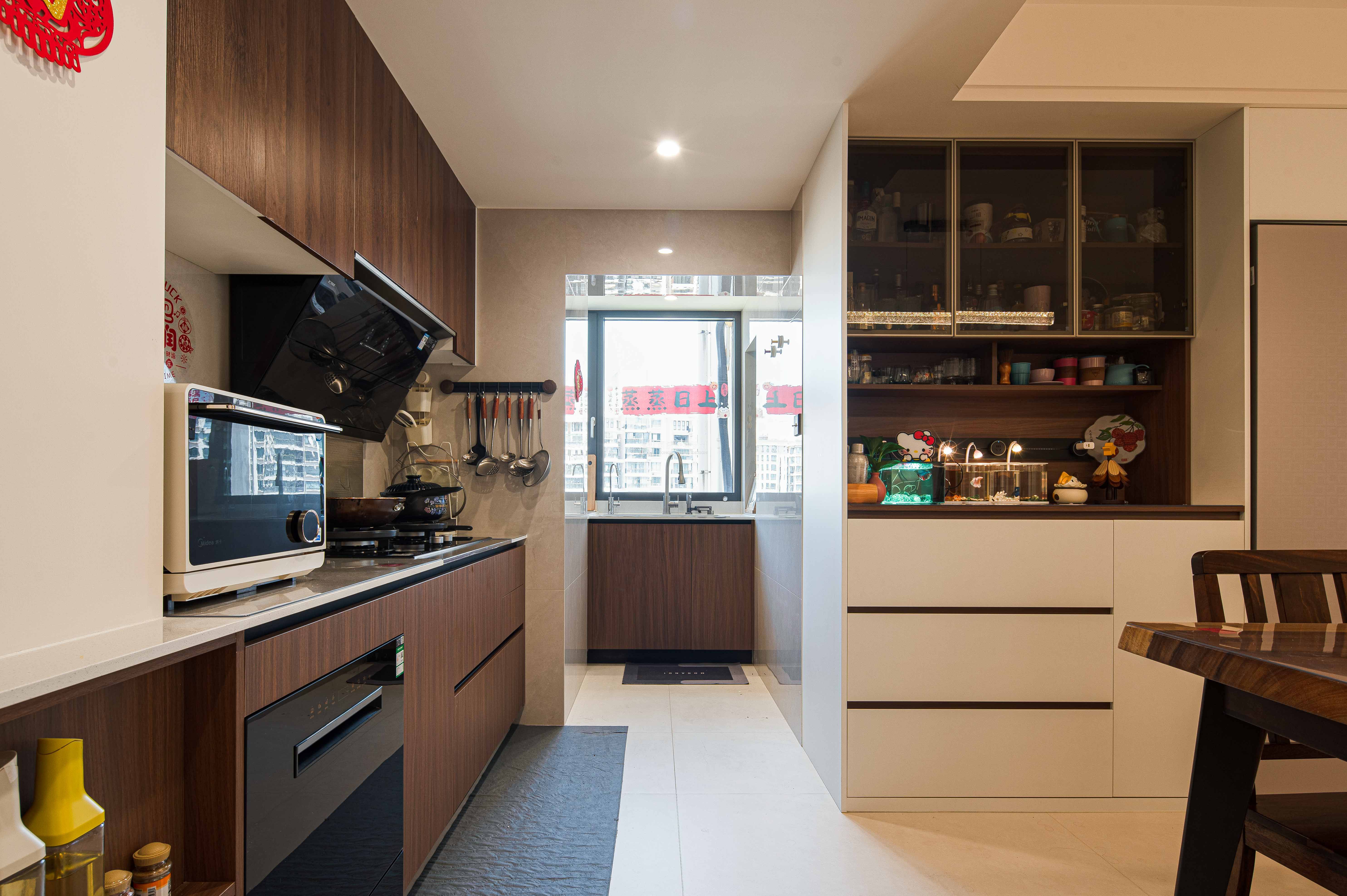 设计亮点: 1、客厅、餐厅与厨房开放式布局,形成连贯的公共活动区,增强家人互动交流; 2、客厅与阳台相连,设计洗衣等功能,拓展家务空间; 3、主卧地台设计,拓展休憩、阅读等功能,让空间不止一种用法;