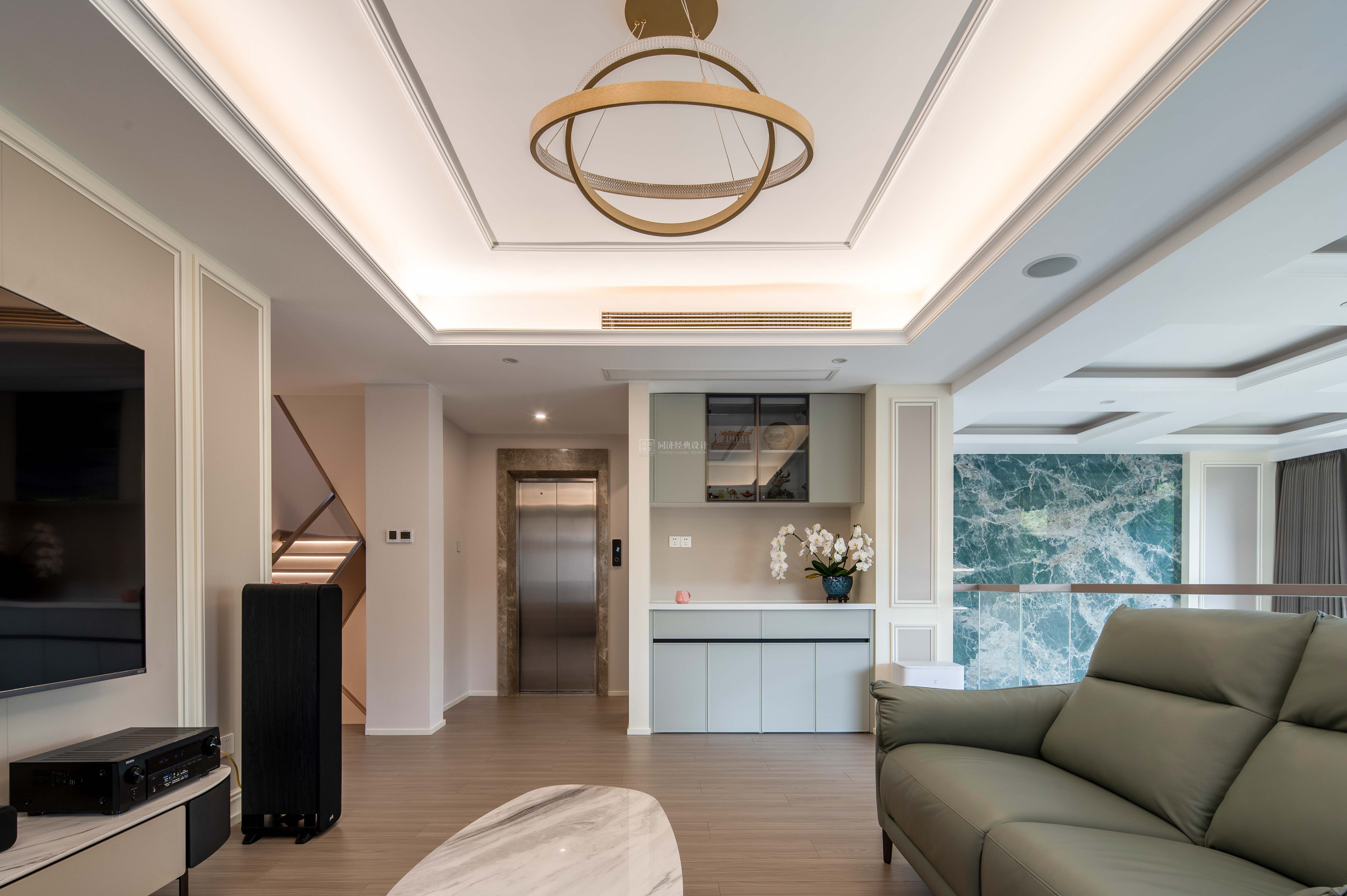 设计亮点: 1、客厅挑空设计,利用自然光线让客厅的空间更加明亮通透; 2、室内加装电梯,便于老人上下楼; 3、厨房半开放式的厨房空间,采光和通透性都会比原先要好; 4、全屋智能系统,来度假前可以远程打开空调、全屋WIFI、地暖等。